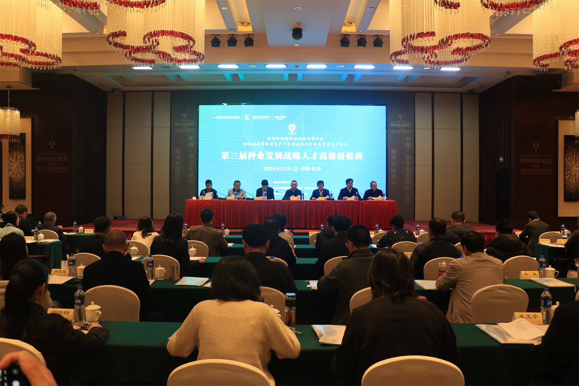 11月20日—22日,由農(nóng)業(yè)農(nóng)村部規(guī)劃設(shè)計(jì)研究院、中國(guó)農(nóng)業(yè)工程學(xué)會(huì)主辦,袁隆平農(nóng)業(yè)高科技股份有限公司協(xié)辦的第三屆種業(yè)發(fā)展戰(zhàn)略人才高級(jí)研修班在湖南長(zhǎng)沙成功舉辦。來(lái)自國(guó)家種業(yè)陣型企業(yè)、優(yōu)勢(shì)企業(yè)的142位學(xué)員參與了本次培訓(xùn)。農(nóng)業(yè)農(nóng)村部種業(yè)管理司副司長(zhǎng)儲(chǔ)玉軍、湖南省農(nóng)業(yè)農(nóng)村廳副廳長(zhǎng)歐陽(yáng)彪和袁隆平農(nóng)業(yè)高科技股份有限公司總裁張林出席開(kāi)班式,農(nóng)業(yè)農(nóng)村部規(guī)劃設(shè)計(jì)研究院張慶東副院長(zhǎng)主持開(kāi)班儀式。